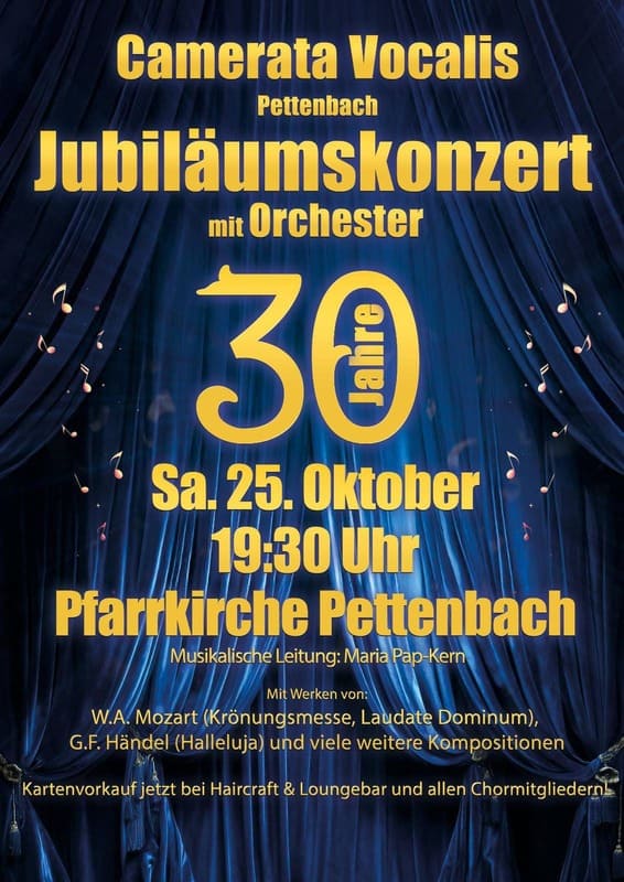 Karten gibt’s bei mir, allen anderen Chormitgliedern und in Pettenbach bei Haircraft Siberer