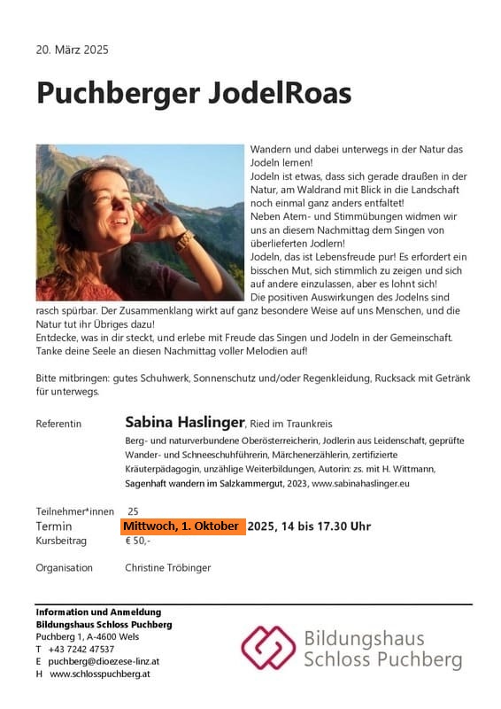 Jodeln, das ist Singen mit dem spannenden Wechsel zwischen Brust-Stimme und Kopf-Stimme. Dabei werden einzelne “un-sinnige” Silben wie “ho – eh – tri – ei – di – ri” aneinander gereiht und, je nachdem welcher Jodler es ist, “miteinaund”, “vüreinand” oder “gegeneinaund” oder “nacheinaund” gesungen und das einstimmig, zweistimmig oder dreistimmig…